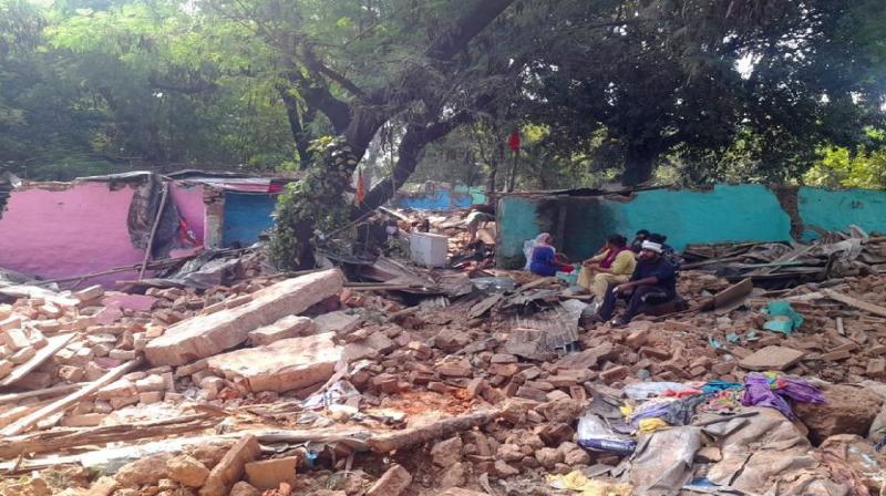 शाहपुर में सुरक्षित बेदखली और विध्वंस को सुनिश्चित करने के लिए सोमवार सुबह से ही भारी संख्या में पुलिस बल तैनात किया गया था।