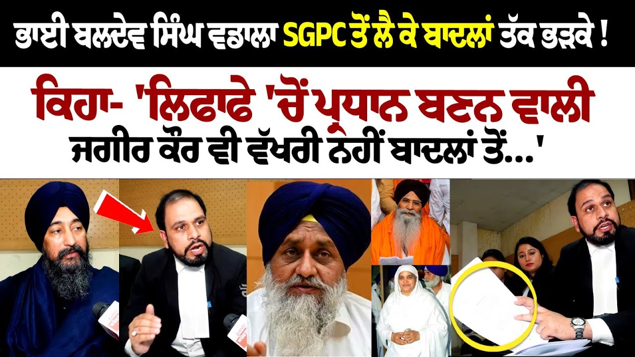 ਭਾਈ ਬਲਦੇਵ ਸਿੰਘ ਵਡਾਲਾ SGPC ਤੋਂ ਲੈ ਕੇ ਬਾਦਲਾਂ ਤੱਕ ਭੜਕੇ ! ਕਿਹਾ- 'ਲਿਫਾਫੇ 'ਚੋਂ ਪ੍ਰਧਾਨ ਬਣਨ ਵਾਲੀ ਜਗੀਰ ਕੌਰ..