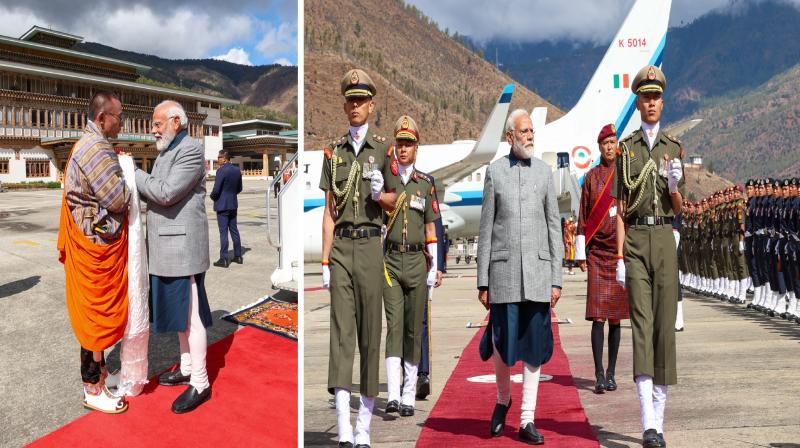PM Modi in Bhutan news in hindi: प्रधानमंत्री नरेंद्र मोदी देश की पड़ोसी प्रथम नीति के तहत हिमालयी राष्ट्र के साथ भारत के अनूठे संबंधों को और मजबूत करने के लिए शुक्रवार को दो दिवसीय राजकीय यात्रा पर भूटान पहुंचे।