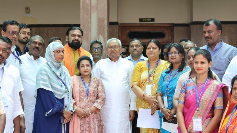 Bihar News In Hindi: पटना, मुख्यमंत्री नीतीश कुमार ने आज मुख्यमंत्री सचिवालय स्थित 'संवाद' में पंचायती राज व्यवस्था के तहत ग्राम पंचायत, पंचायत समिति एवं जिला परिषद् के प्रतिनिधियों के शिष्टमंडल के साथ बैठक की।